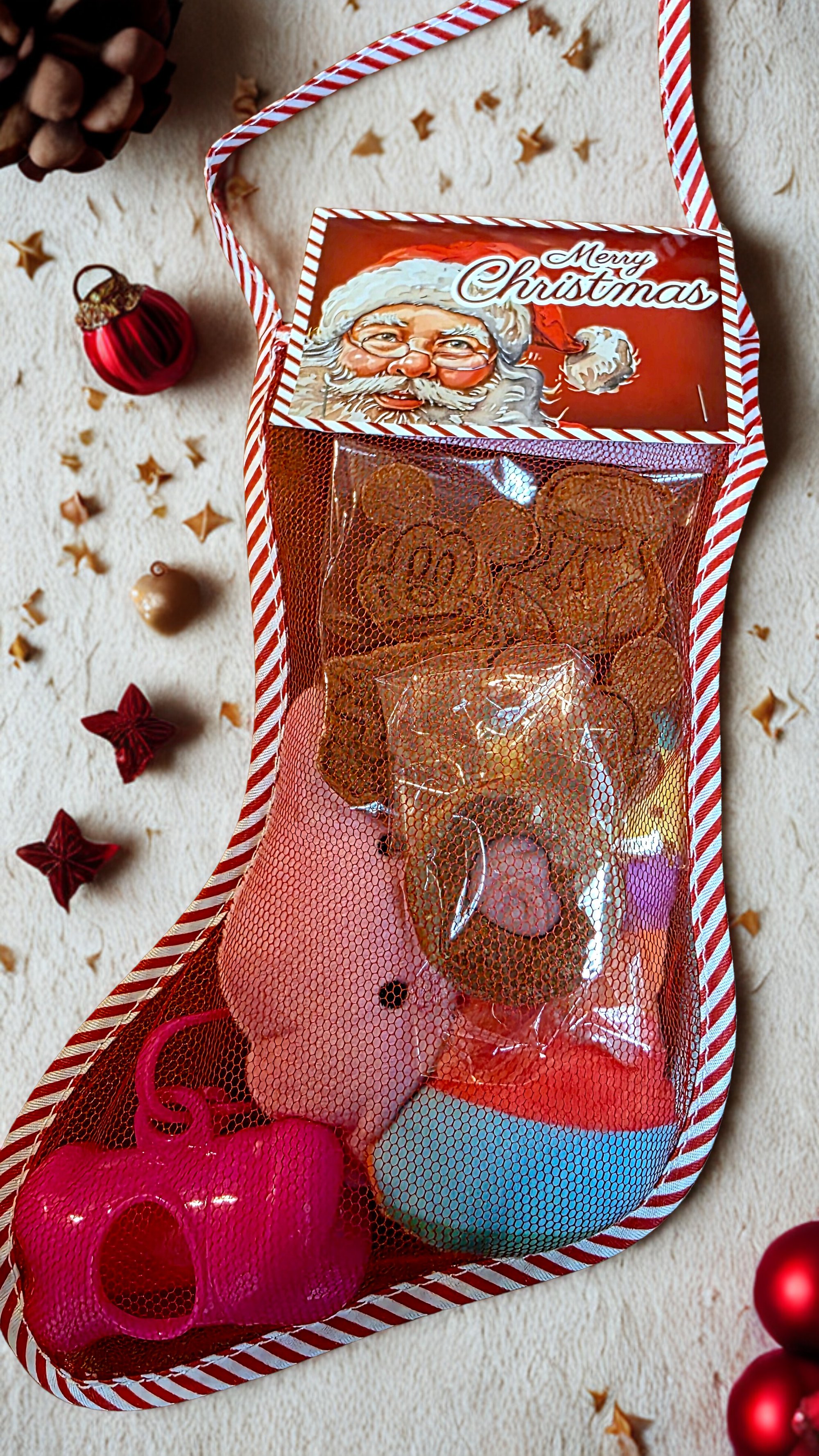 All tucked into an adorable mini Christmas stocking β perfect for gift-giving, stocking stuffers, or just showing your pup some extra love! π